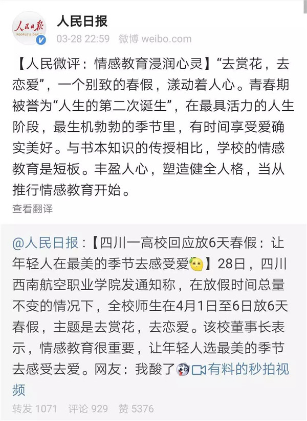【媒体聚焦】西航放6天春假,人民日报微评:情感教育浸润心灵