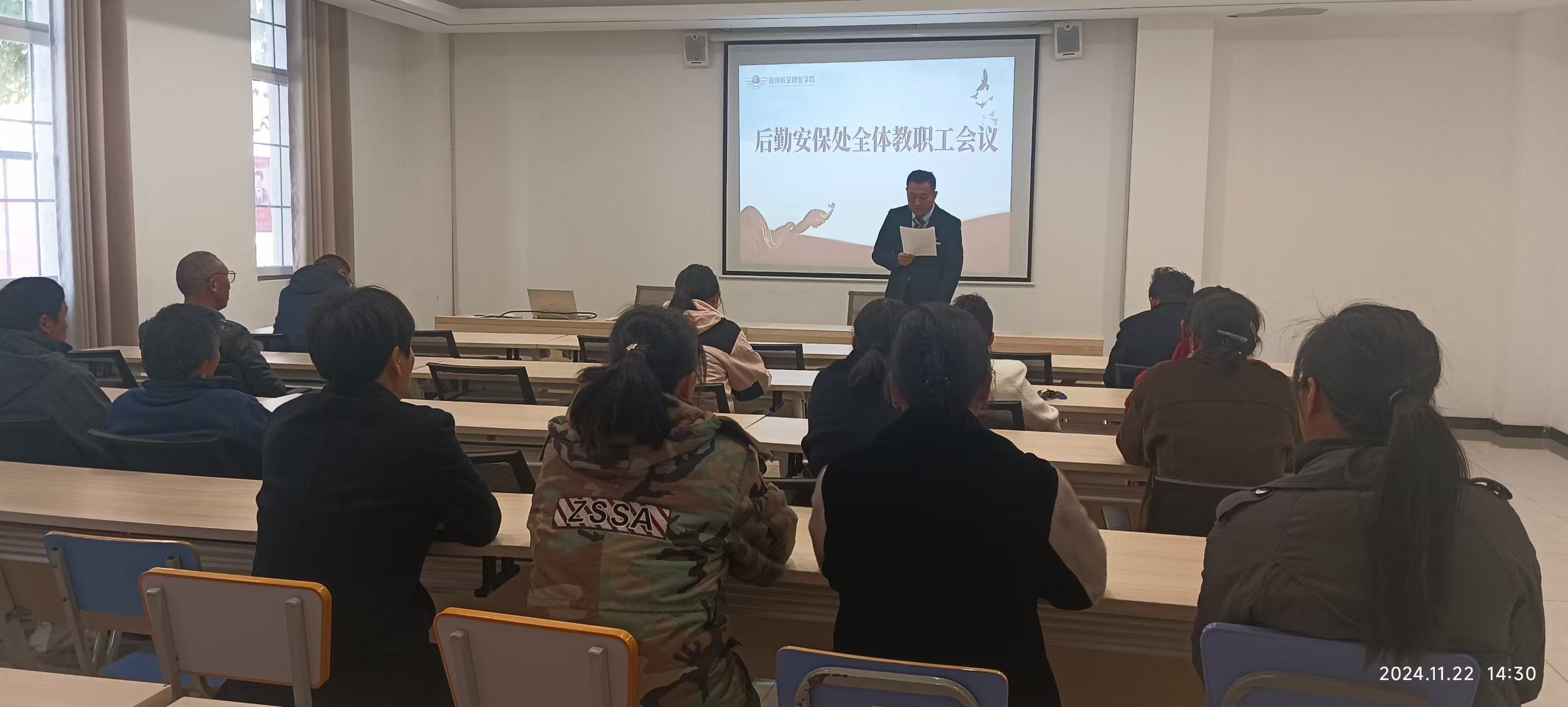 2024年11月29日下午2:30,后勤处在行政楼101会议室召开11月份工作总结会议,后勤处副处长单亚洲主持会议🌄,后勤处全体人员参加。