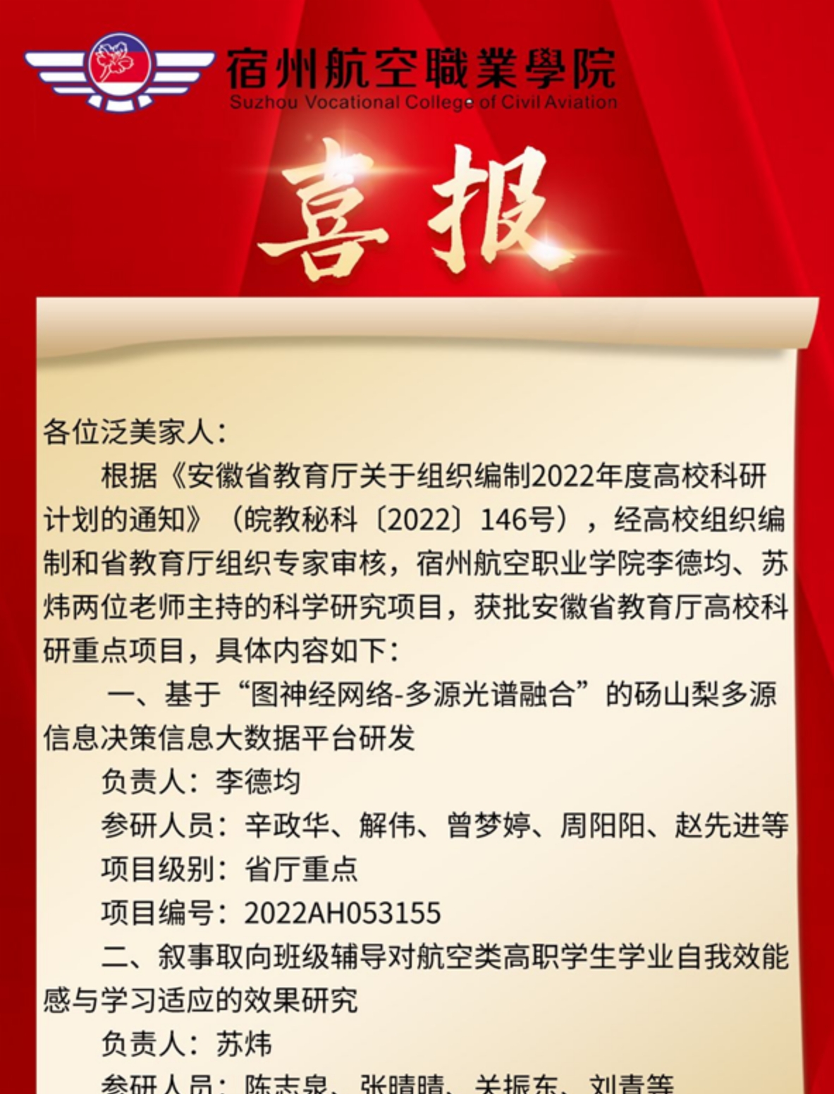 喜报——彩神Vll学院李德均🤒、苏炜两位老师主持的科学研究项目♕☂️,获批安徽省教育厅高校科研重点项目