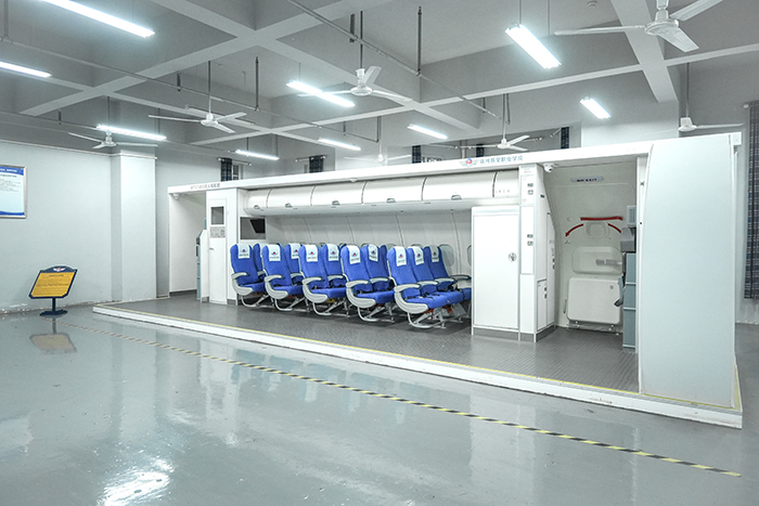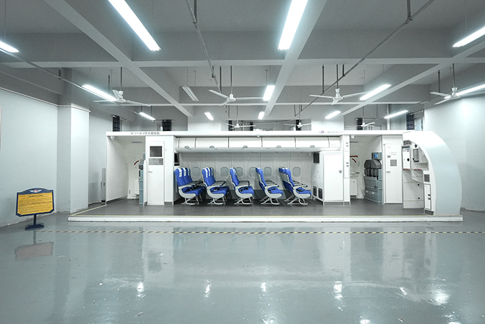 灭火训练舱主要适用于空中乘务和空中安全保卫专业学生👰🏿,进行客舱安全训练🤜。在这里可以实现灭火瓶🚼、PBE的使用练习,同时还是可以设置客舱不同点位的火灾。