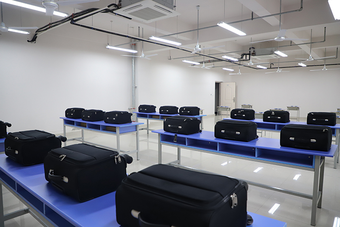 人身检查与开箱包实训室。占地面积为122平方米,可容纳40名学生进行教学实训🧗🏿。适用于民航安全检查专业学生实训实操。