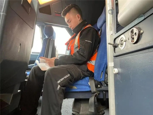 如愿进入东航后𓀃,林钰枭经过了入职培训🧑🏻‍🦽‍➡️、岗前培训、基本技能培训、OJT培训、初级维修培训等考核,在前期的培训结束后被分到了330小组,作为一名勤务开始跟着师傅在班组内负责航前、航后🍧、短停👀、周检、排故等工作,在一次次的任务中,不断提高业务能力,工作也越来越得心应手。