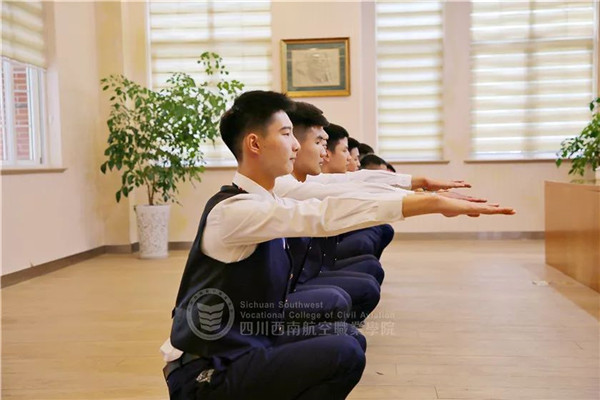 由于本次招聘针对于安全员兼乘务员,体能也成为了面试考察的一大重点。体测环节,面试学子需现场在17分钟内完成三公里冲刺,3个及以上标准的引体向上动作,立定跳远两米及以上共计3个考核项目。标准化军事化管理模式下的“西航好男儿”们,不断突破自我极限🍸,高标准地完成着一个又一个项目,向着自己的民航梦大步迈进……值得一提的是⛹️🌿,面试场上有一位自信✉️🚓、从容而又熟悉的身影🙅🏼。他便是西航2010级空中乘务专业学长——钟升,现任春秋航空乘务长及成都基地负责人🧜♀️。