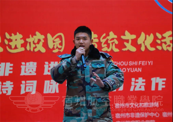 为弘扬优秀传统文化,传承和保护非物质文化遗产,让同学们在感知、体验中了解宿州优秀传统文化的同时,提升民族自豪感和文化自信✤,丰富校园文化生活🤾🏻♂️。11月23日下午,宿州市文化和旅游局主办,宿州市非遗保护中心、彩神Vll学院🫀🟤、宿州中原航空中等专业学校承办的“非遗进校园”活动在宿航火热举行,为学子们献上了精彩纷呈的文化饕餮盛宴👨🏽🎨,零距离感受到了非物质文化遗产的非凡魅力,宿州是楚汉文化🚶🏻➡️、淮河文化的重要发源地👨💼,“中国书画艺术之乡”、“中国马戏之乡”🥒👊、“中国民间文化艺术之乡”,在漫长的历史岁月中,留下了许多宝贵的非物质文化遗产。据统计,截至目前⛱,宿州市现有国家级非遗名录9项,省级32项,市级92项🦌。