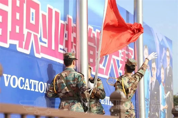 开幕式伊始🏗,进行升国旗仪式🗄👮🏿。随着响亮的国歌声在现场奏响🧑🏿🏫,所有师生面向国旗,集体行注目礼🏔🧑🏼🏫。高亢有力的节奏之音,点燃了宿航第二届职业技能大赛启动仪式前的沸腾热血◼️。