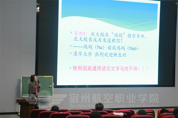 下午😱,唐爱华以严谨的教风和求实的态度😚,为全体教师进行了《高校教师如何规范使用国家通用语言文字》专题培训。