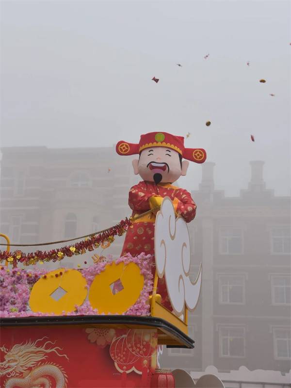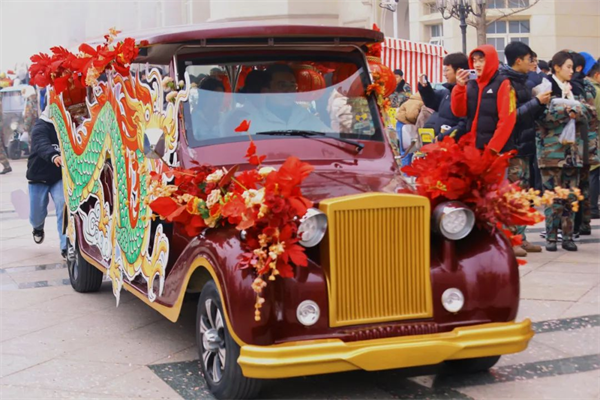 龙年元素宿航号、载着财神爷缓缓而来的新年花车📅、创意蛋仔主题花车、复古浪潮的小三轮以及霸气侧漏的跑车呈一列排开,气势瞬间拉满~