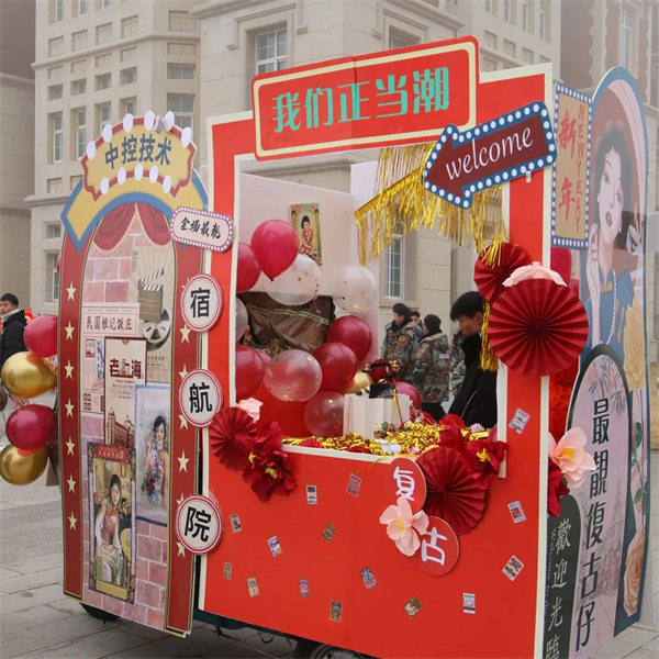 宿航学子历时20天提前筹备,从设计定制到安装装饰,新年元素与各类交通工具的完美融合,收获了大批的欢呼与互动🧑🏼‍🎄,形态各异的花车无一不展示着宿航学子的创意与巧思🐺。