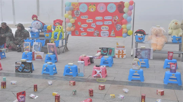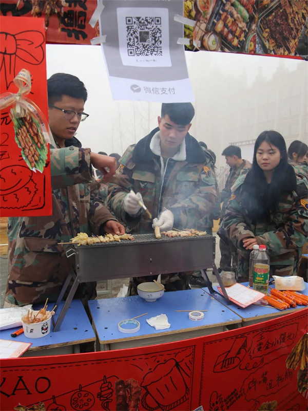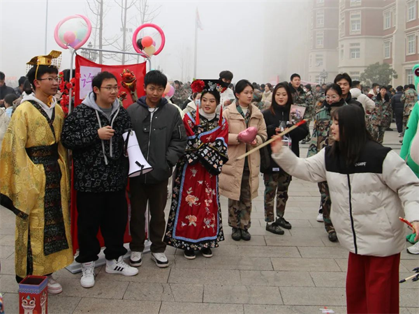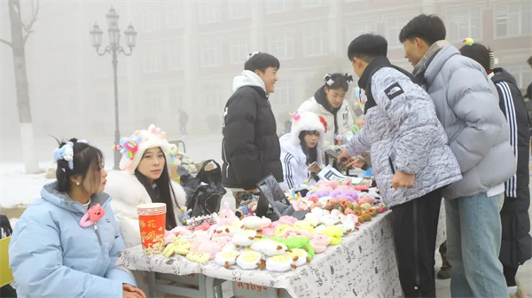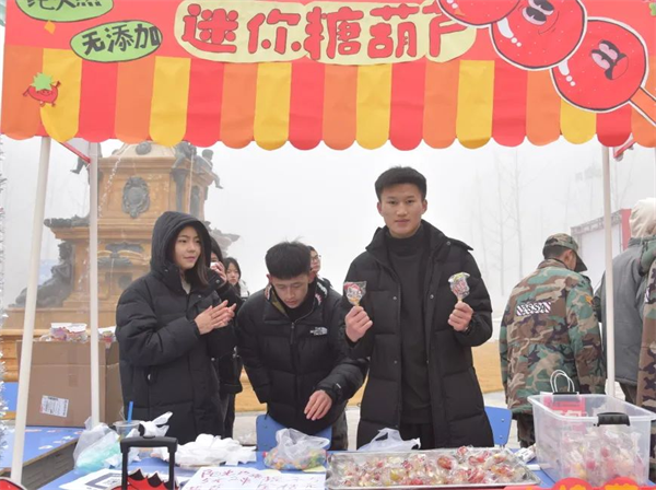 琳琅商品上场,集市火爆开张!腾飞广场摆满了摊位,大雾天气丝毫抵挡不了同学们的热情,糖葫芦🚤、爆米花、糖画🪰、棉花糖等各类新年美食层出不穷;投壶👼🏿、抽奖🥸、套圈等趣味游戏欢笑不断;玩偶、发圈等手工艺品种类丰富,创意十足,让人目不暇接。