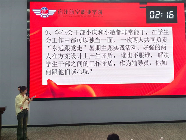 谈心谈话主要考察辅导员对学生特征、学生成长成才规律的了解把握程度🎷,以及对学生的教育引导能力、解决理论困惑和实际问题的能力等。比赛现场💾,参赛辅导员和助演学生你来我往,处处智慧交锋、敏捷应对,将辅导员的日常工作场景生动、鲜活的再现🏨。