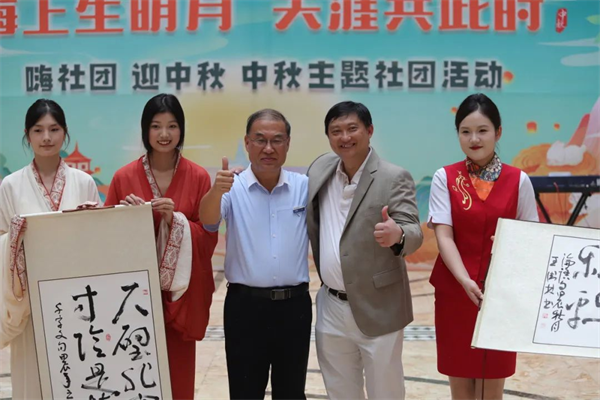 海上生明月,天涯共此时。值此中秋佳节之际⛺️,来自宿航的美食社和手工社亲手制作手工月饼;王卫林带领书法社亲手写毛笔字赠送Vincent;音乐社献上了优美动听的英文歌曲✧;舞蹈社也献上了独具安徽特色的舞蹈表演《黄梅雅韵》。