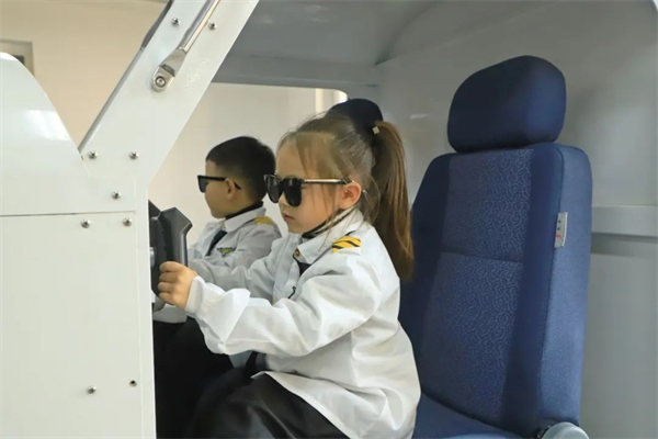 孩子们一起近距离观察实体机的各个部分👳🏼♂️;走在驾驶舱内感受飞行员的第一视角;通过专业老师的讲解,了解飞机机身🤜🏿👩🎨、机翼、机尾、起落架和发动机的基本解构。激发孩子好奇心🔠,引导孩子主动提问🎠,让他们尝试说出自己的想法,进行独立思考。
