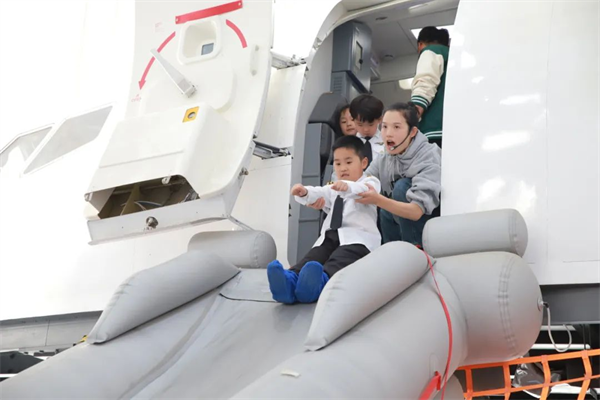 换上专业的实训服装,学习跳舱逃生的标准动作和逃生方法⛹🏼♀️,使用充气式救生滑梯,进行飞机陆地紧急迫降情景模拟😋,完成安全撤离。锻炼孩子胆识🔤,让孩子们在体验滑梯玩乐的同时学习跳舱逃生知识,进行团队协作♛,让孩子们融入集体🪣。