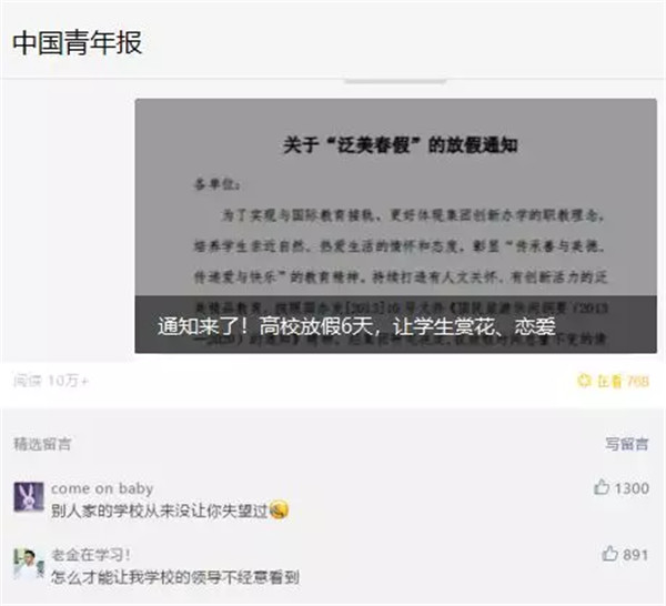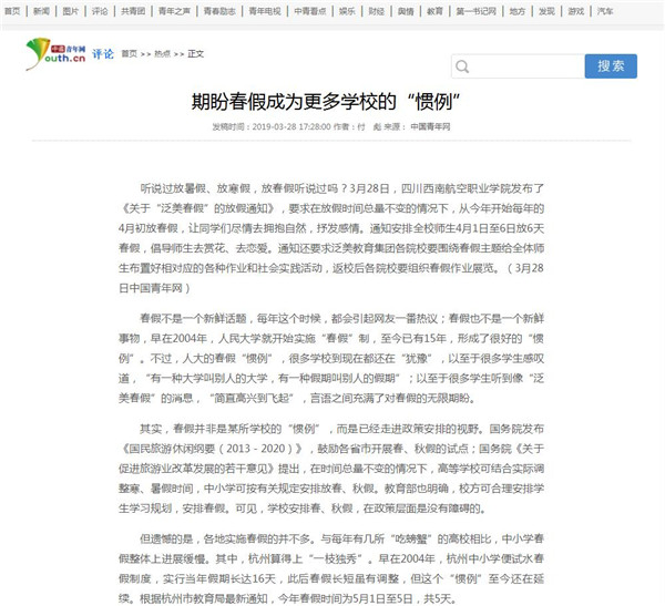 【中国青年网评论🏌🏿♀️:期盼春假成为更多学校的“惯例”】