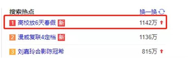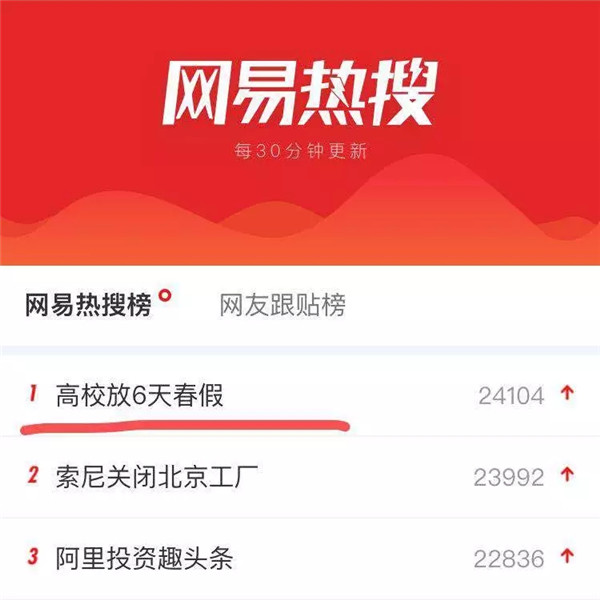 除此之外⚄,在上网输入“高校”两个字💂🏿♀️,首先出来的就是“高校放6天春假”,可见“泛美春假”这个决定是多么的深得人心。