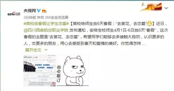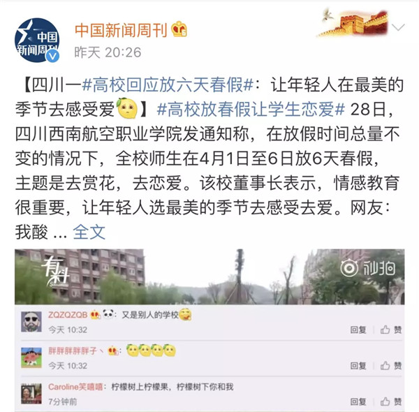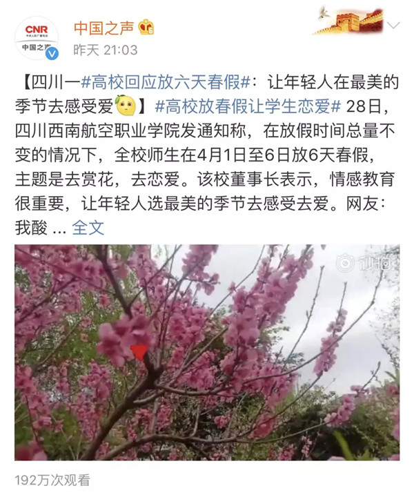 【媒体聚焦】西航放6天春假,人民日报微评:情感教育浸润心灵