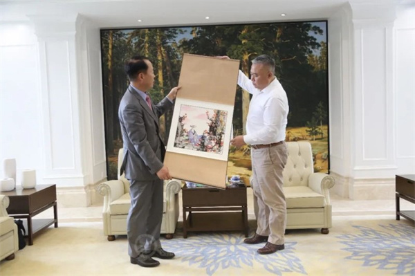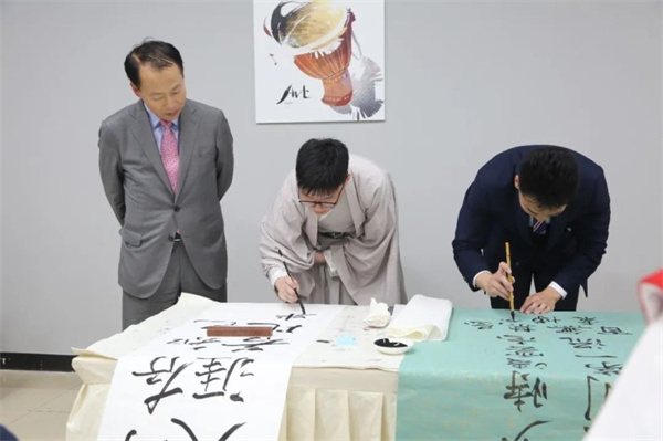 在仪式前,大韩民国驻成都总领事馆总领事李光镐一行参观了西航人文经典校园𓀐、一流实训中心等,近距离感受实训课堂。大韩民国驻成都总领事馆总领事李光镐与泛美集团董事局主席魏全斌进行了座谈,双方就泛美教育国际化办学理念、校企合作的育人模式等展开交流。