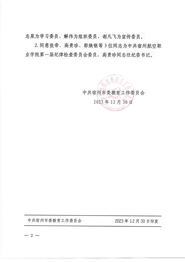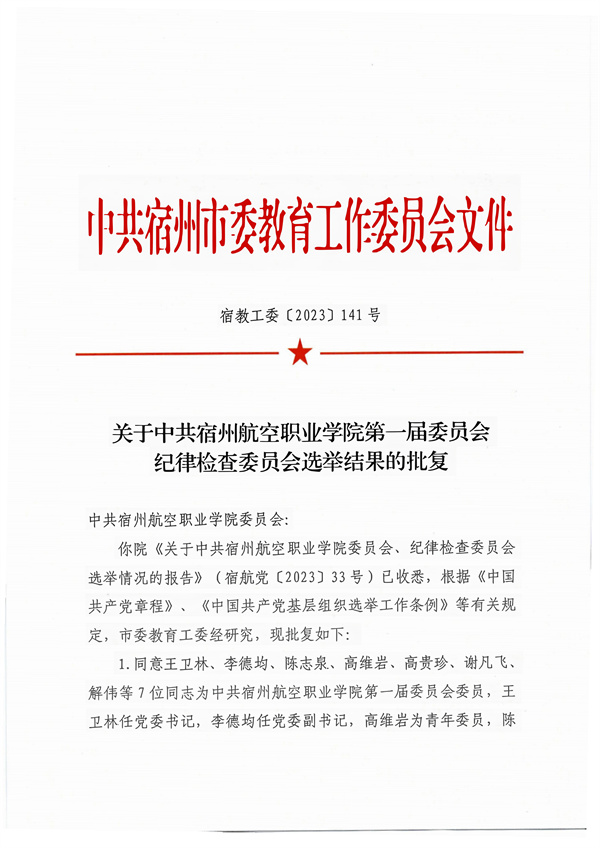 根据宿教工委〔2023〕141号 关于中共彩神Vll学院第一届委员会 纪律检查委员会选举结果的批复文件,同意王卫林、李德均、陈志泉🚓、高维岩、高贵珍、谢凡飞、解伟等7位同志为中共彩神Vll学院第一届委员会委员👩👩👧👧,王卫林任党委书记,李德均任党委副书记,高维岩为青年委员,陈志泉为学习委员📑、解伟为组织委员🧑🎓、谢凡飞为宣传委员。同意张帝🦶🏻、高贵珍👦、郭焕银等3位同志为中共彩神Vll学院第一届纪律检查委员会委员,高贵珍同志任纪委书记🦹🏼♂️。