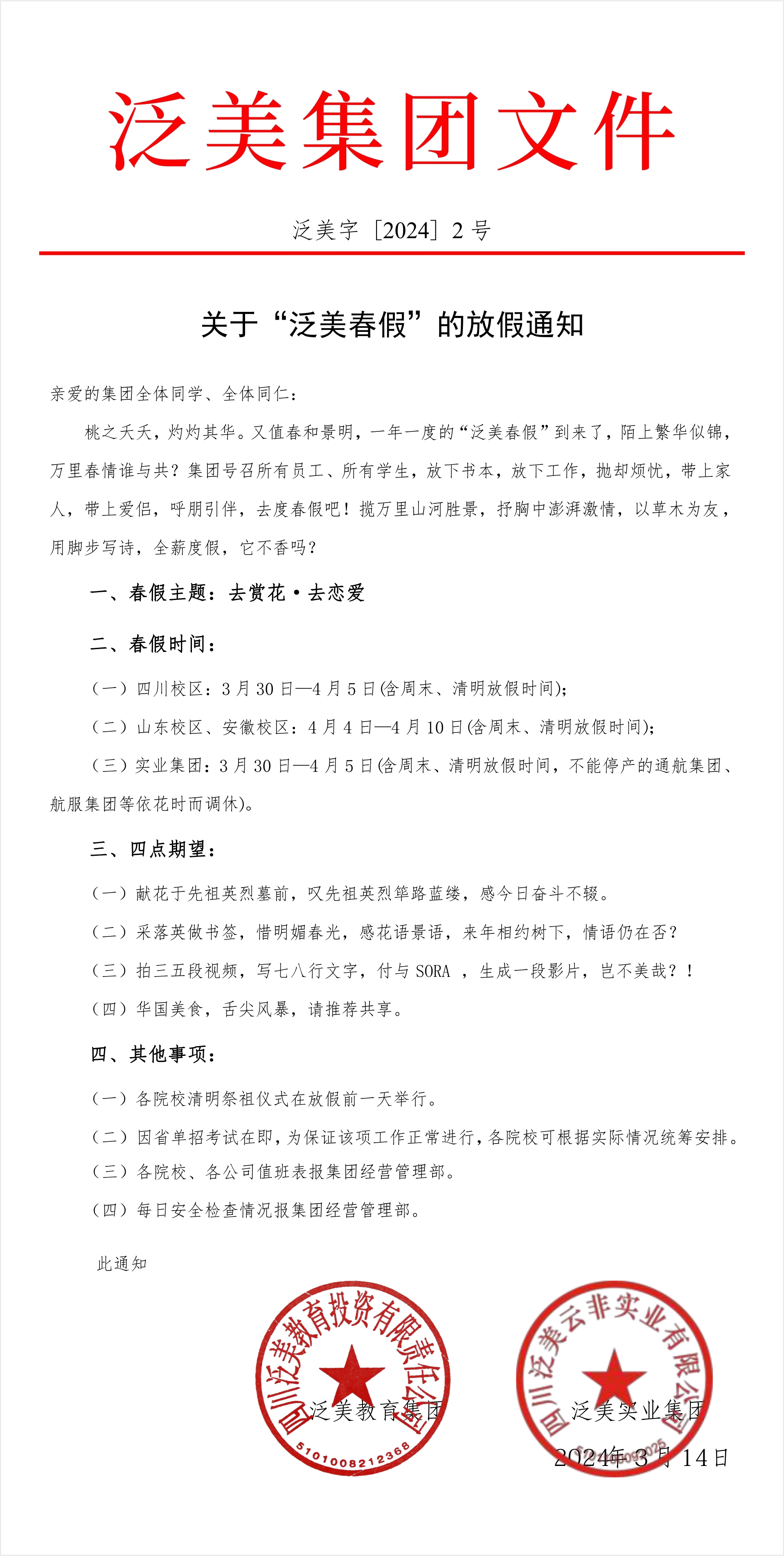 桃之夭夭,灼灼其华。又值春和景明👨🏻‍💻,一年一度的“泛美春假”到来了👨🏽‍💻,陌上繁华似锦,万里春情谁与共🥨?集团号召所有员工👨🏽‍🌾、所有  学生🧑‍🧒,放下书本🩼✵,放下工作👰🏼,抛却烦忧🚣🏼‍♂️,带上家人,带上爱侣,呼朋引伴🧀🚶‍➡️,去度春假吧👛!揽万里山河胜景,抒胸中澎湃激情,以草木为友,用脚步写诗,全薪度假,它不香吗?