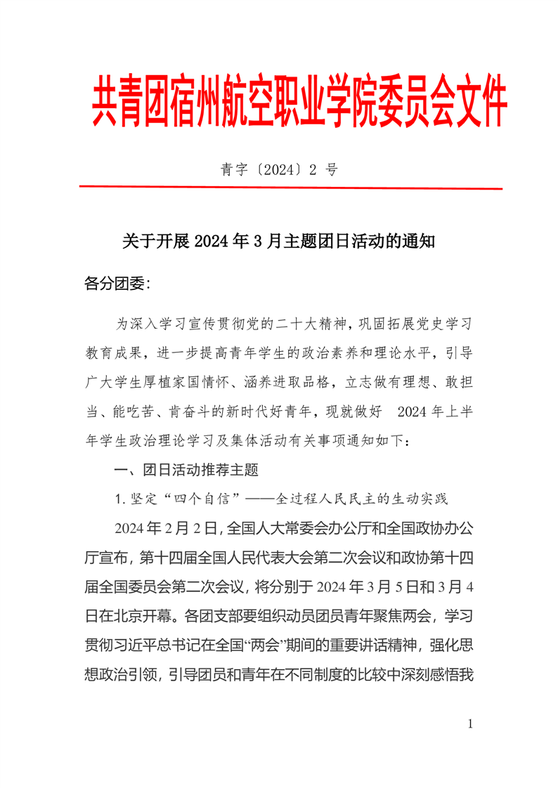 关于开展2024年3月主题团日活动的通知