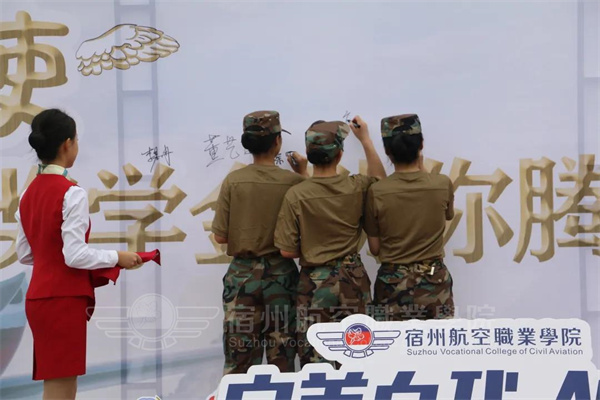 在礼仪人员的引导下,同学们依次到幕布处签名,留下踏入新校园的印记♝,并用相机记录美丽瞬间🗂🧑🏻🔬。