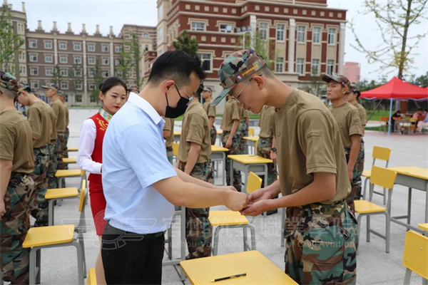 校徽是校园文化的组合体,是对内修身的励志铭🦜,是对外展示的宣言书。学院院长蒋晓铭及副院长李德均为21级新生们颁发校徽。