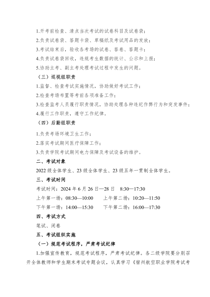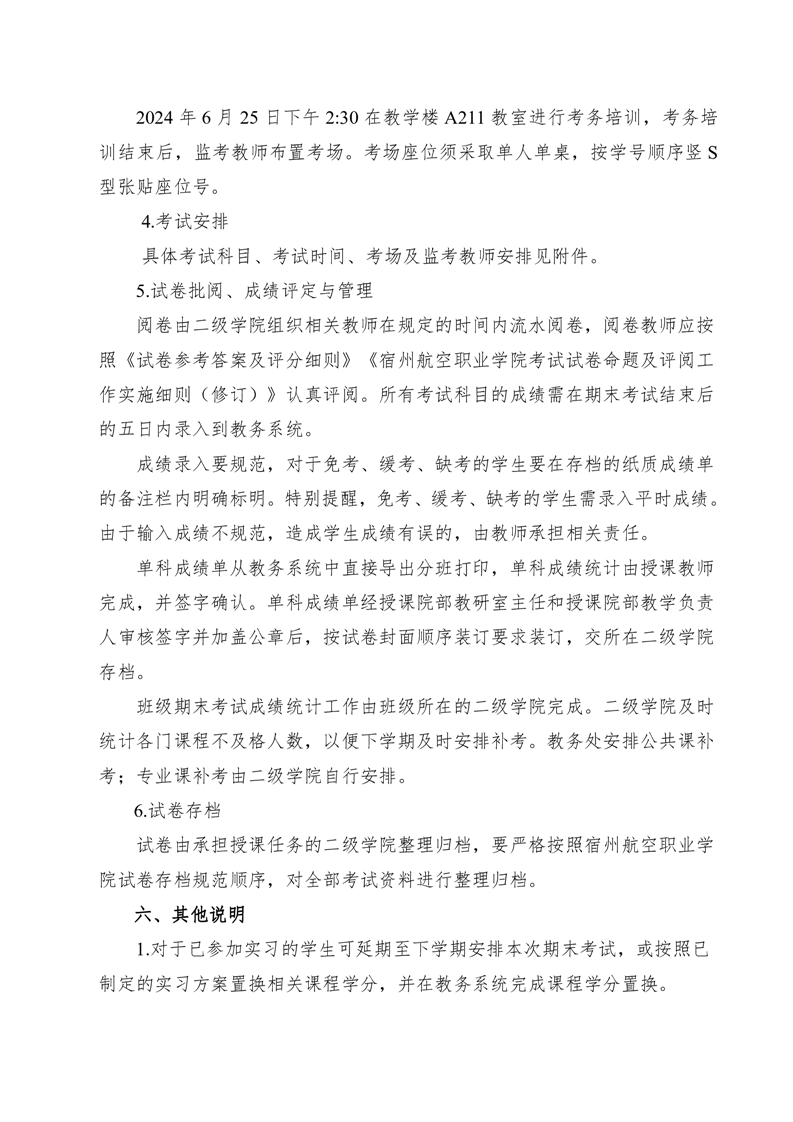 2023-2024学年度第二学期期末考试方案