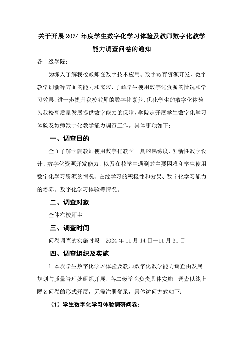 关于开展2024年度学生数字化学习体验及教师数字化教学能力调查问卷的通知