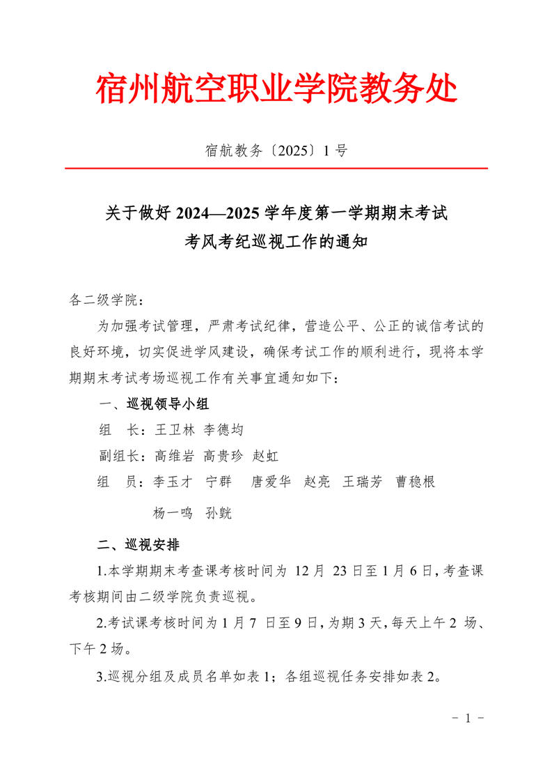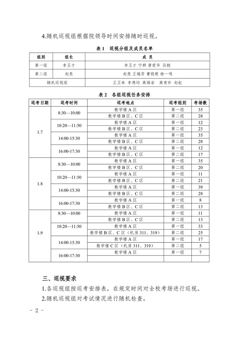 关于做好2024—2025学年度第一学期期末考试 考风考纪巡视工作的通知