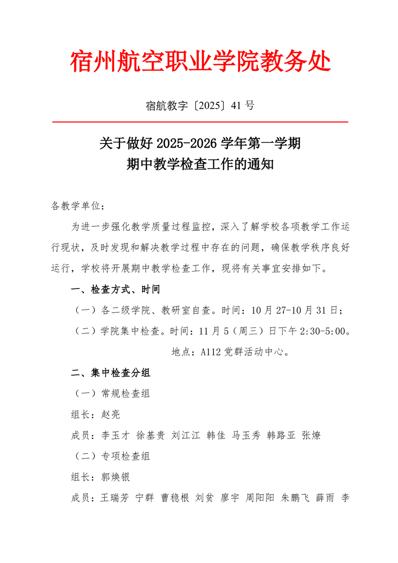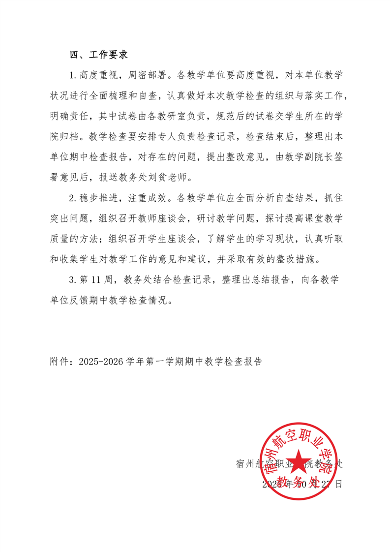 2025-2026学年第一学期期中教学检查的通知