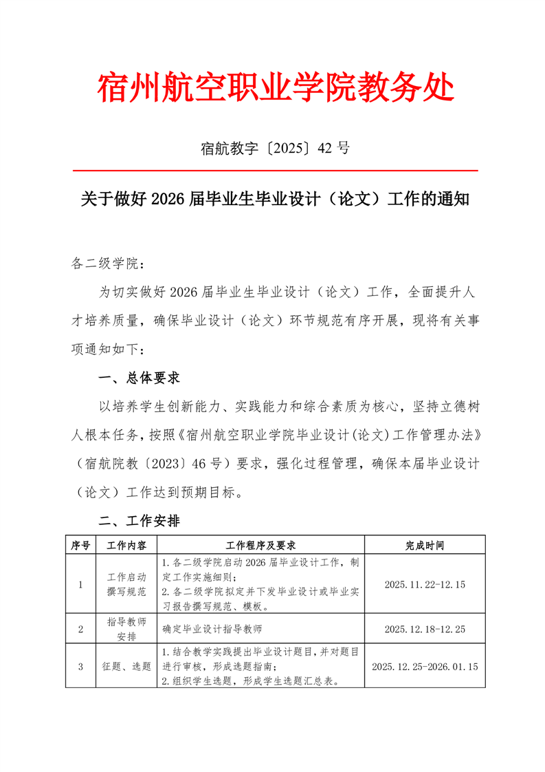 2026届毕业设计通知