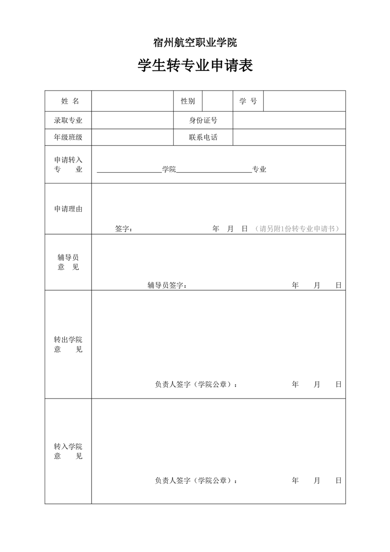 彩神Vll学院学生转专业申请表