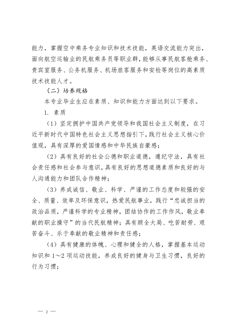 民航安全技术管理专业2022级人才培养方案 (高考统招)