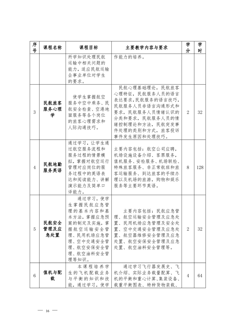 机场运行服务与管理专业2022级人才 培养方案(高考统招)