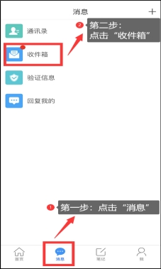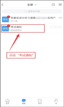 1.点击最下方“消息”👰🏿♀️,消息栏中选择“收件箱”;查找所报考的对应学校发布“考试通知”,点击进入;