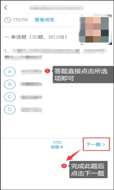 4.开始答题并交卷:每题选择正确答案点击该选项即可🥯,点击右下角“下一题”继续作答👨👧👦;直到最后一题时系统会提示“已经是最后一题了”,可点击“复查交卷”进行答题情况核查
