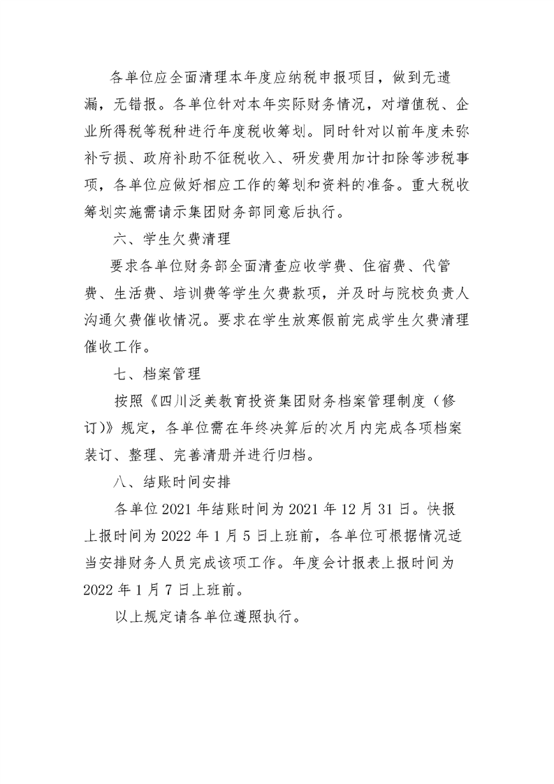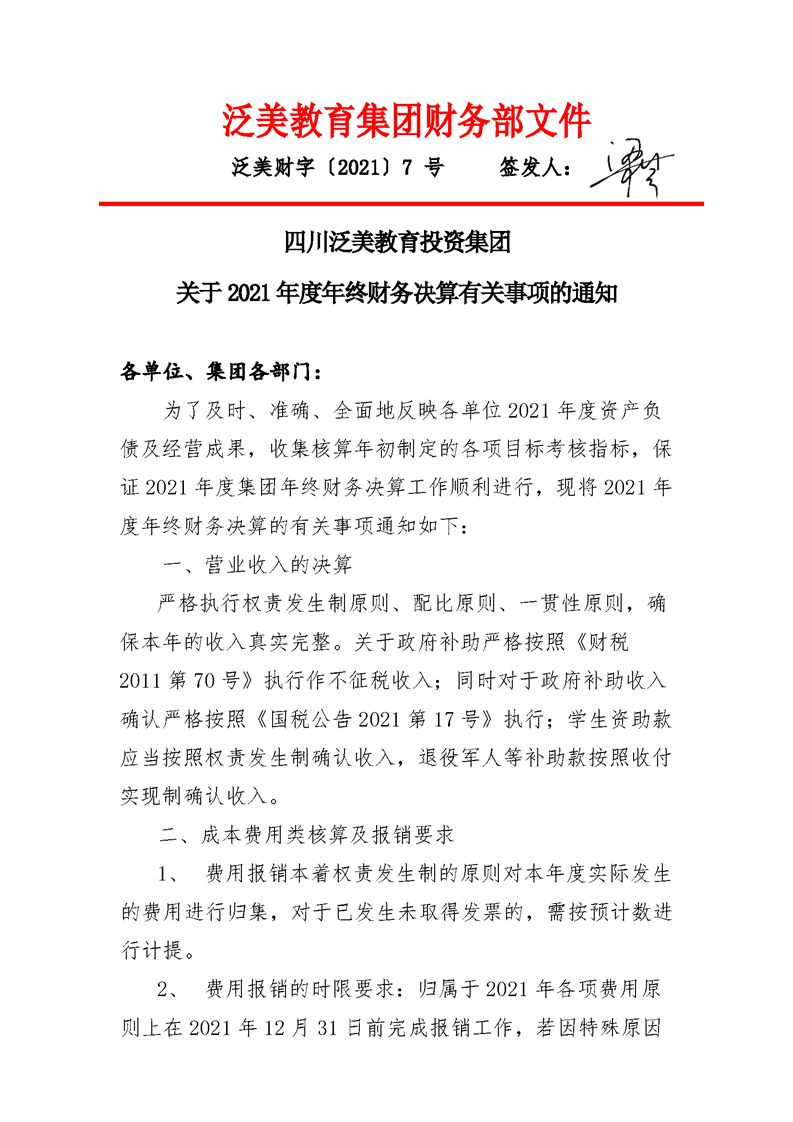 四川泛美教育投资集团关于2021年度财务决算有关事项的通知