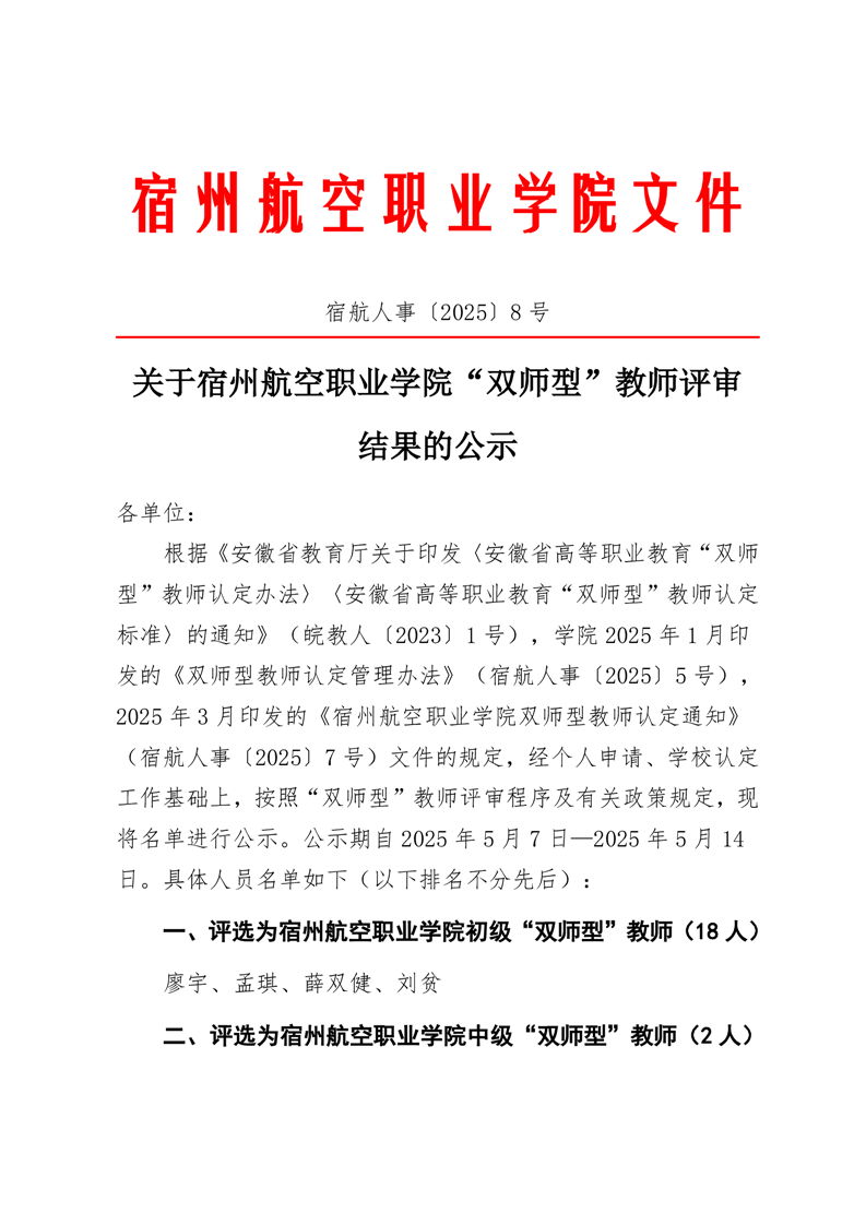 关于彩神Vll学院“双师型”教师评审结果的公示