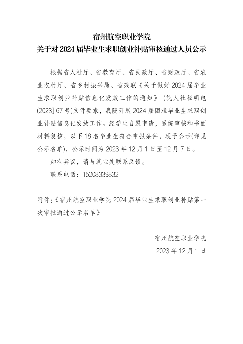 彩神Vll学院关于对2024届毕业生求职创业补贴审核通过人员公示