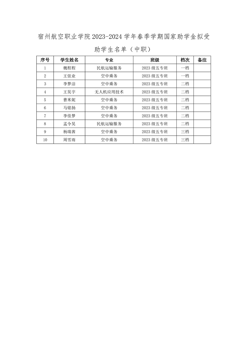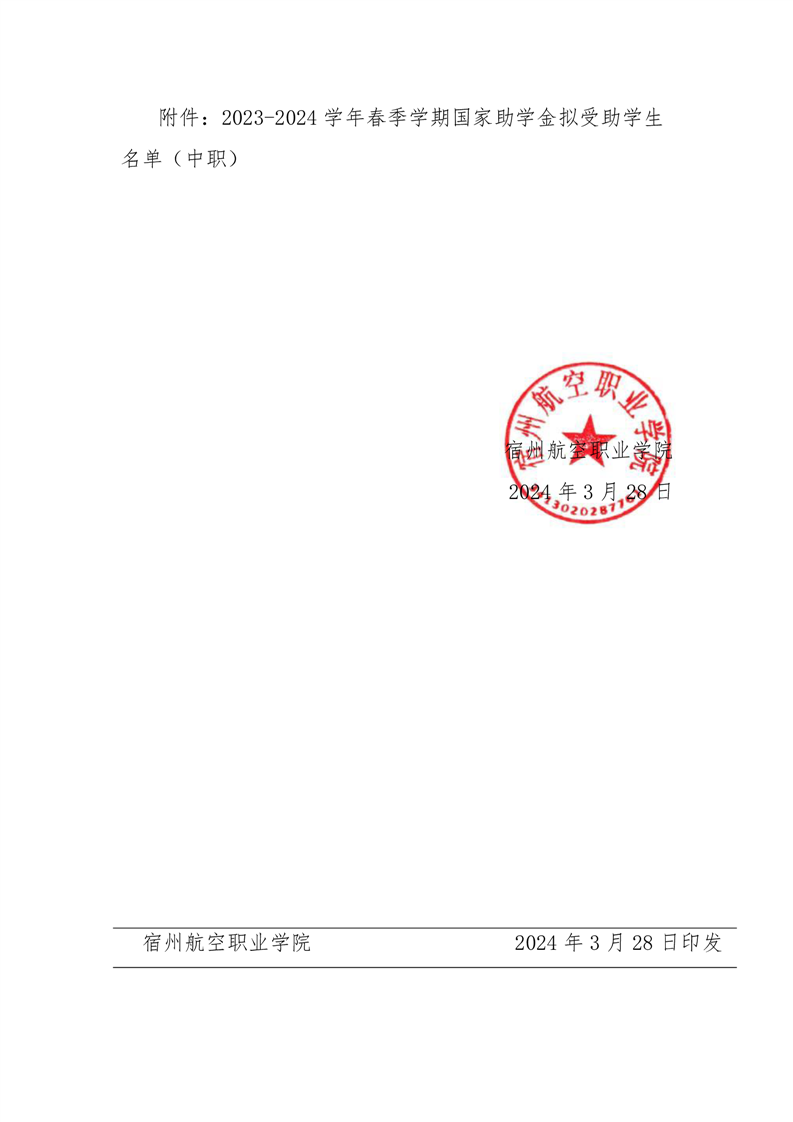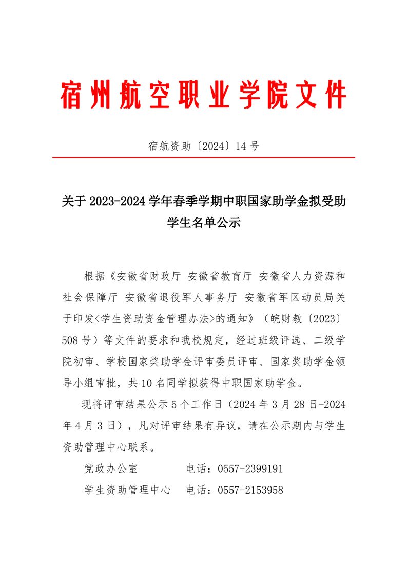 关于2023-2024学年春季学期中职国家助学金拟受助学生名单公示