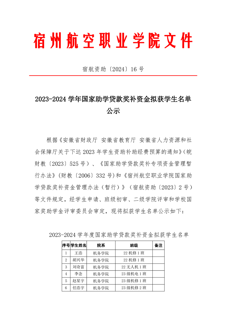 2023—2024学年春季学期家庭经济困难学生增补认定及国家助学金增补名单公示