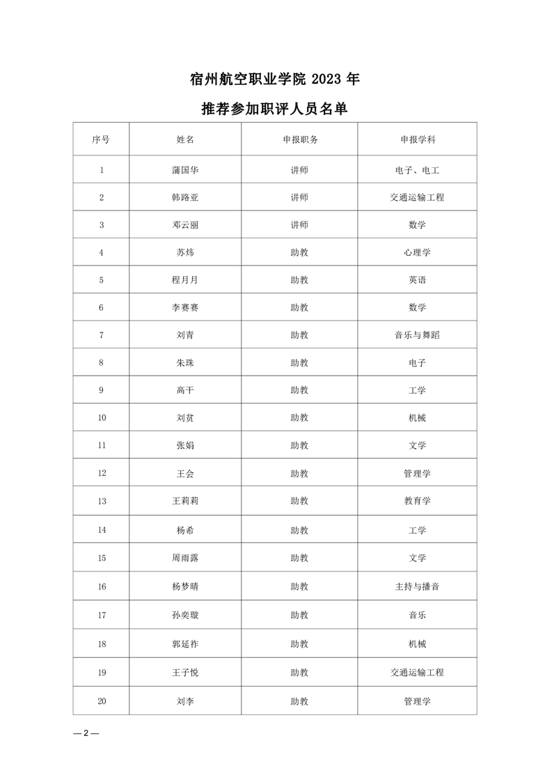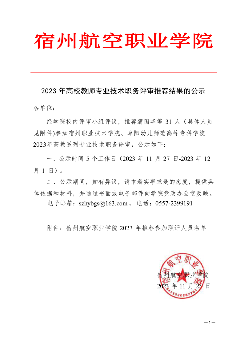2023 年高校教师专业技术职务评审推荐结果的公示