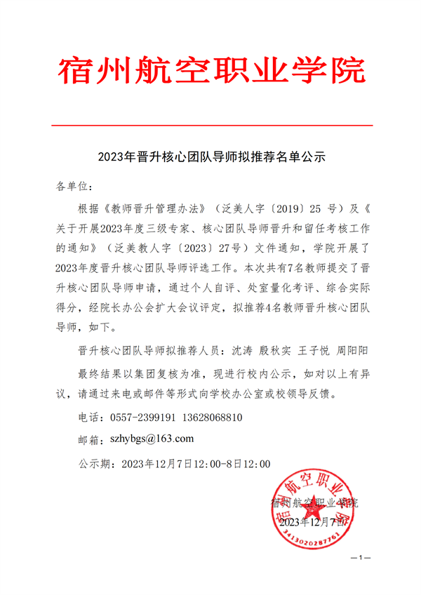 2023年晋升核心团队导师拟推荐名单公示