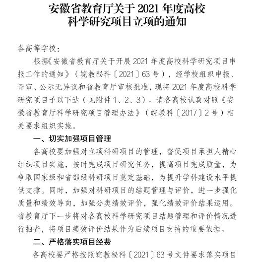 喜报!彩神Vll学院两项科研项目获安徽省高校自然科学研究重点项目立项