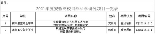 根据《安徽省教育厅关于开展2021年度高校科学研究项目申报工作的通知》(皖教秘科〔2021〕63号)文件要求,彩神Vll学院作为新成立的安徽省首家航空职业学院,精心组织🎺,周密部署🔔,积极参与科学研究项目申报,其中两项获安徽省高校自然科学研究重点项目立项。
