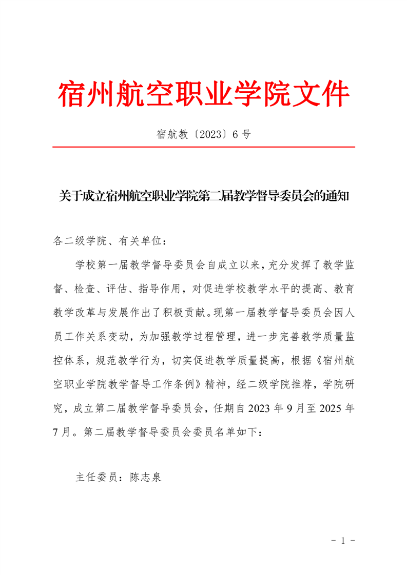 关于成立彩神Vll学院第二届教学督导委员会的通知