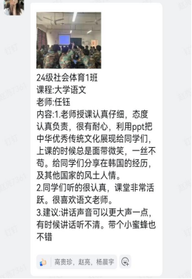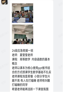 本学期是学院迎评促建的关键节点,院督导委员会强化评估意识和教学质量意识💪🏻,创新学生教学信息员教学质量监督工作方式🙇🏻,组建了24-25学年度院级教学信息员钉钉群🫁,建议学生信息员以“照片+简短评述”的方式对教师课堂教学进行评价,院督导委员会及时收集信息反馈给相关部门和任课教师整改👨🏽🔧。学生信息员积极踊跃🙅🏼♂️,反馈了大量教师课堂教学第一手信息,反映了学生愿望与需求、在帮助教师改善教学效果🕵🏼♀️、加强教学管理等方面发挥了积极作用。