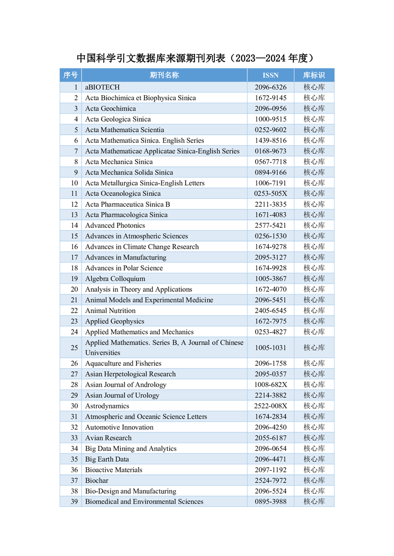 中国科学引文数据库来源期刊列表(2023—2024 年度)