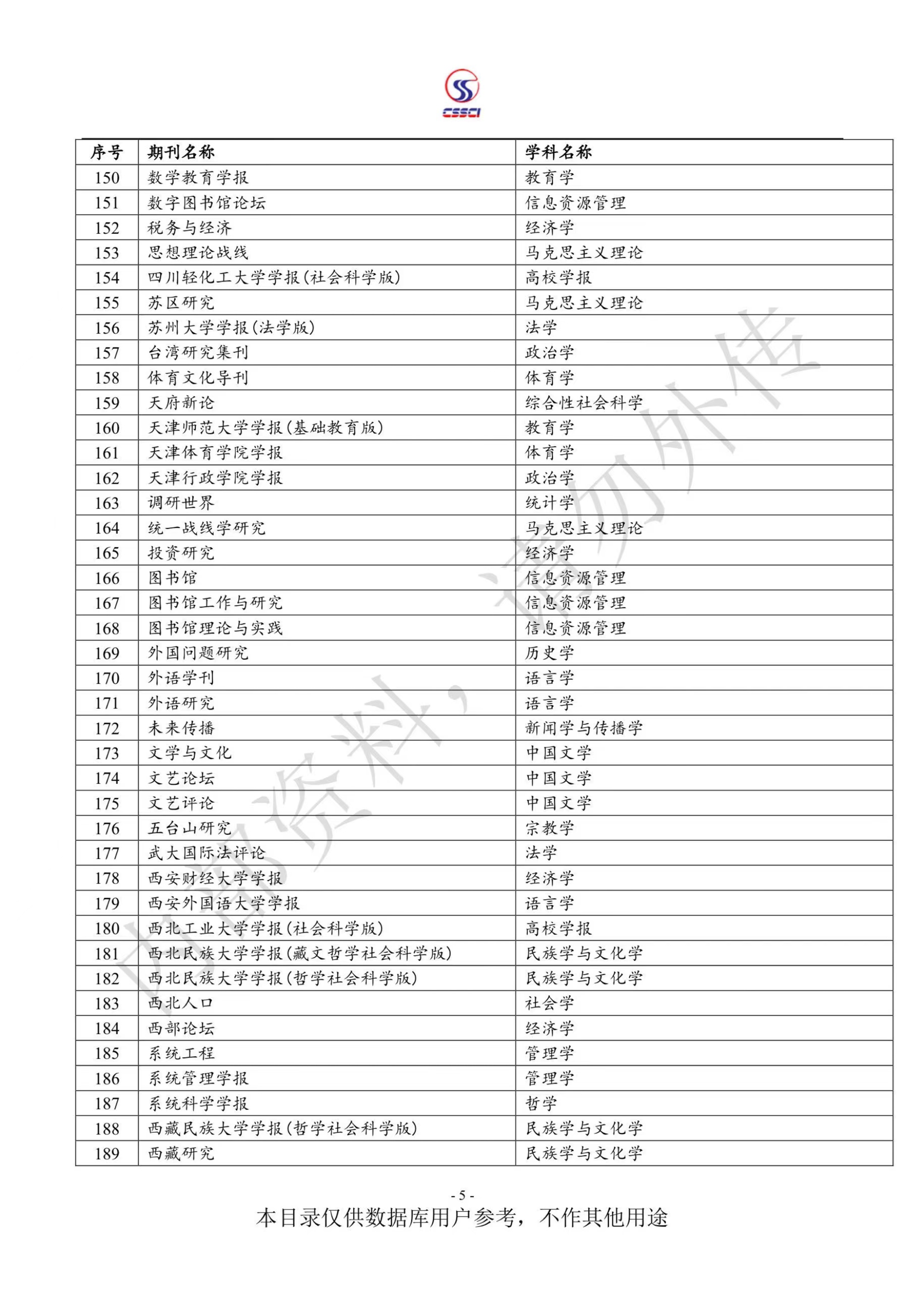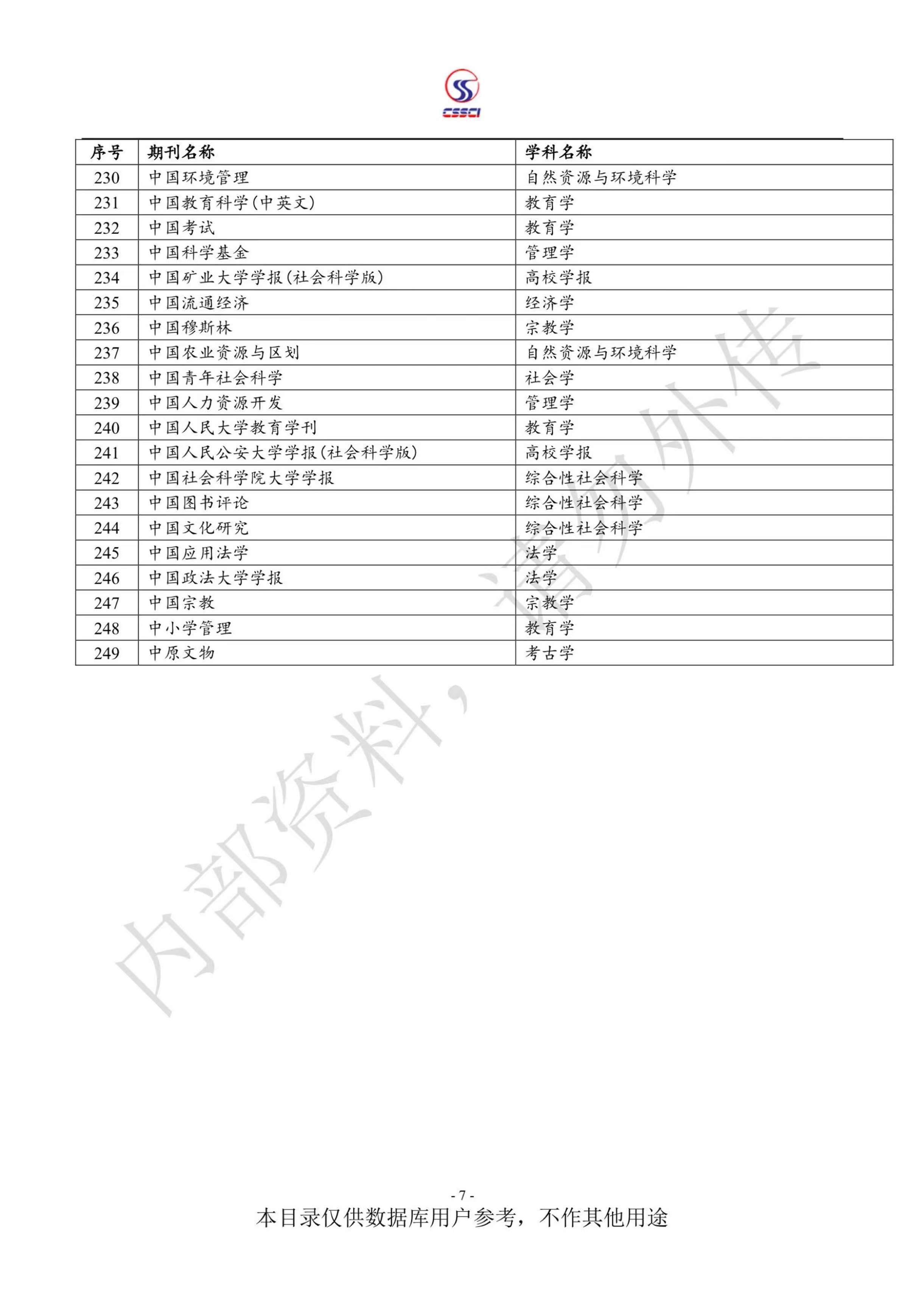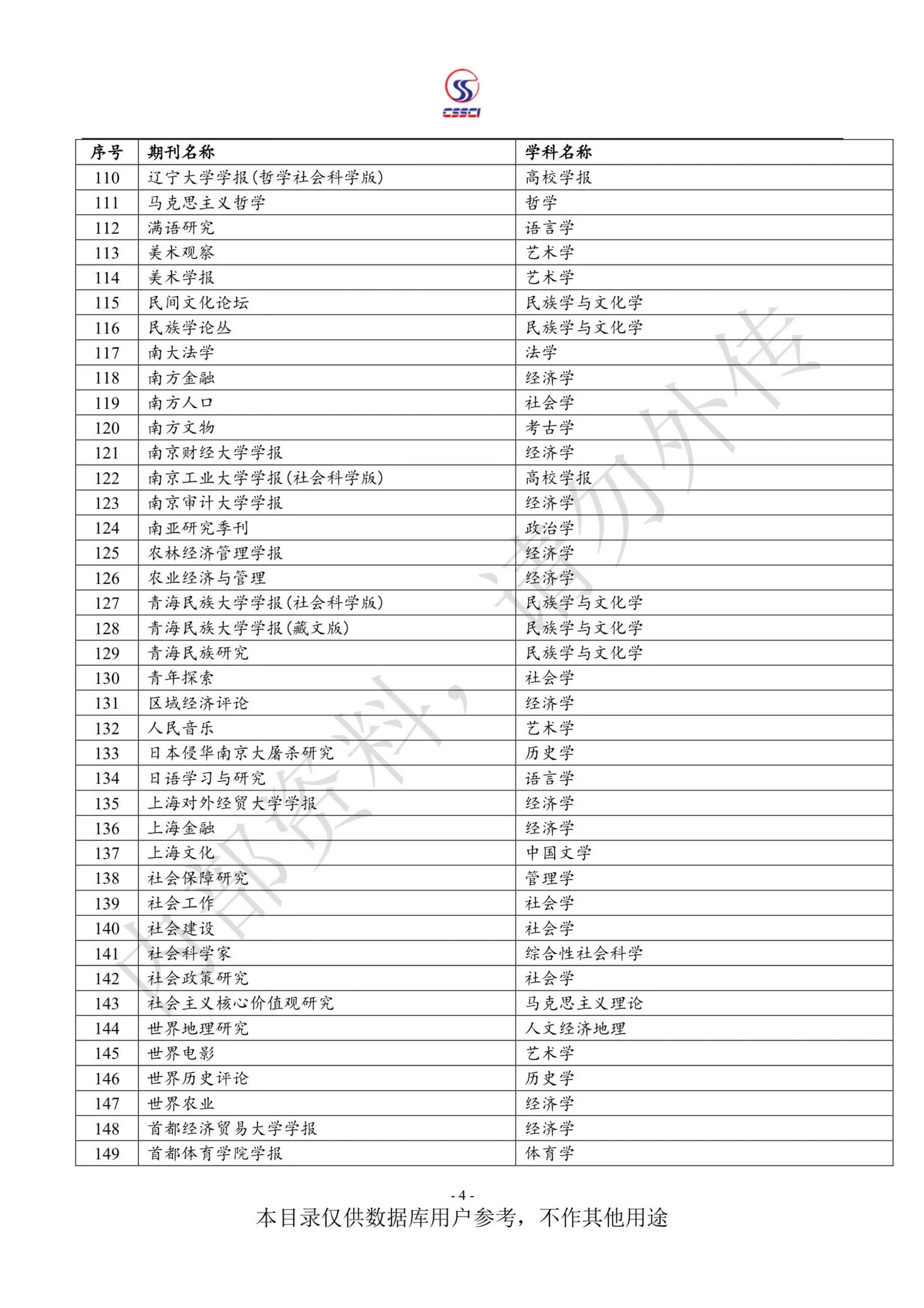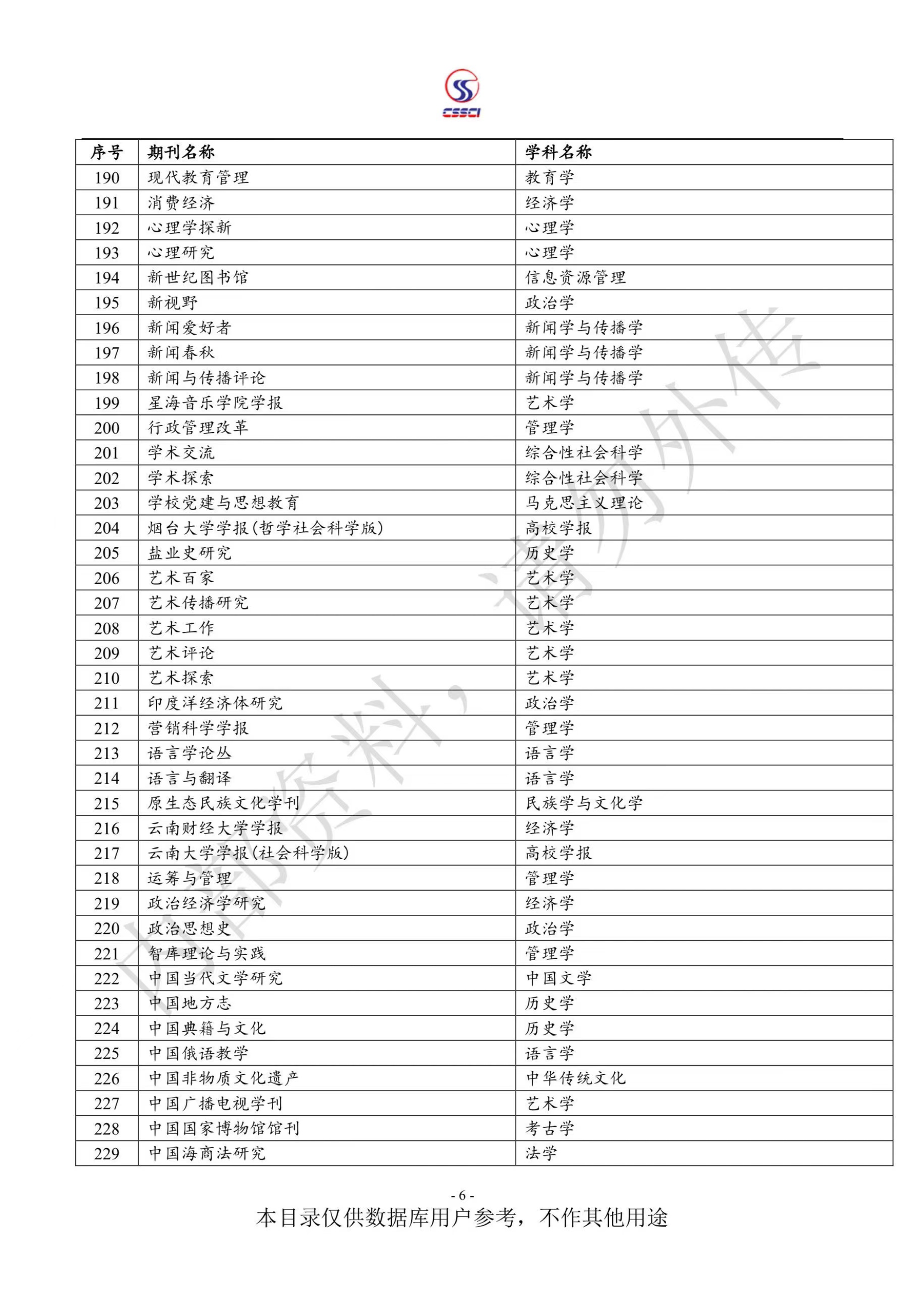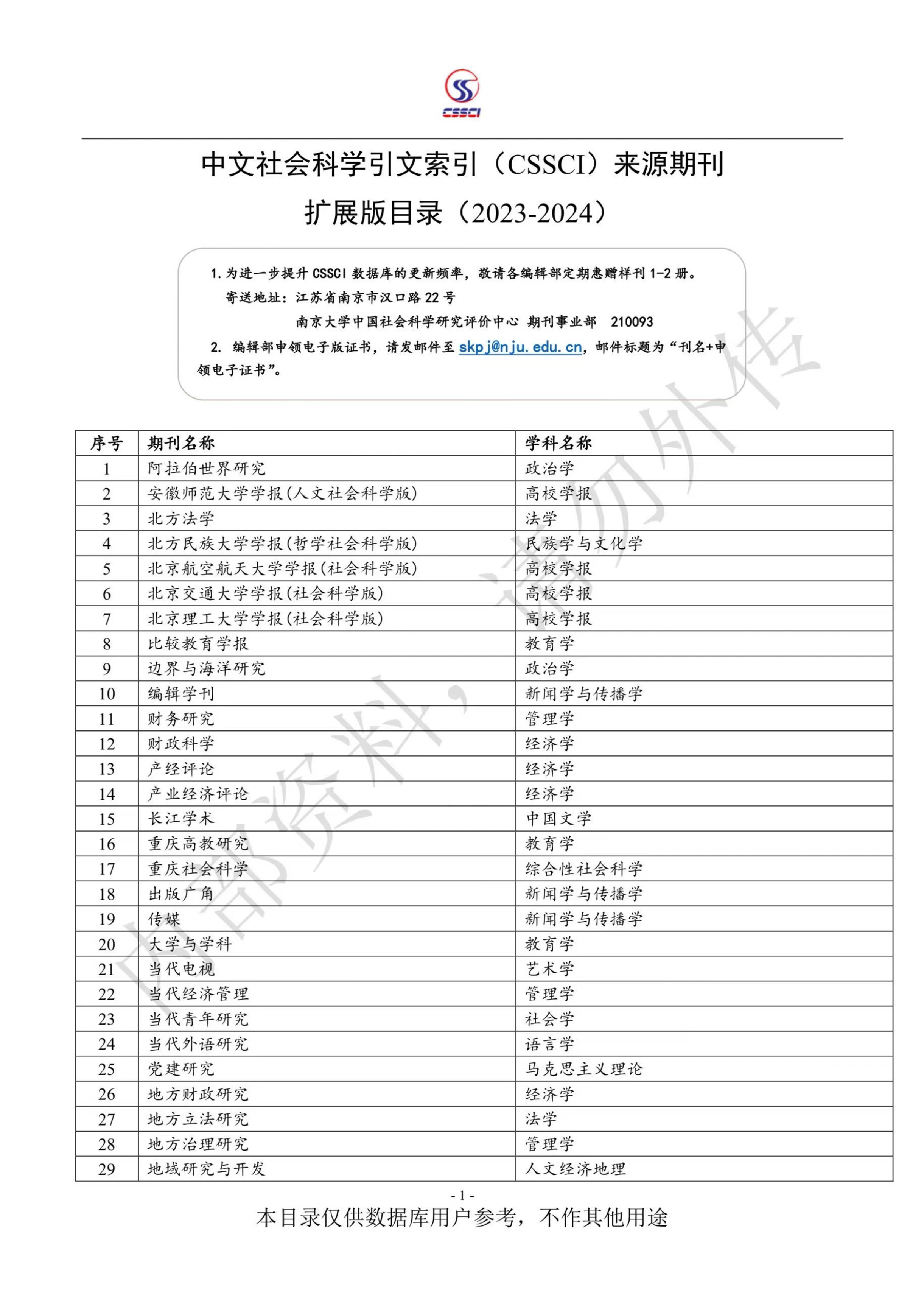 中文社会科学引文索引(CSSCI)来源期刊扩展版目录(2023-2024)