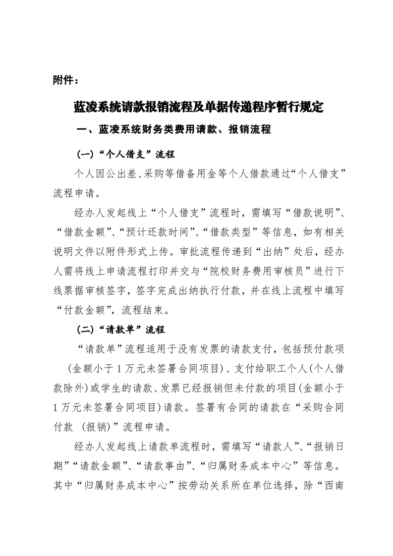 关于印发《蓝凌系统请款报销流程及单据传递程序暂行规定》的通知